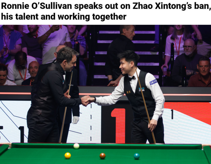 奥沙利文: 赵心童被禁赛 确实有些倒霉了 他是非常有才华的年轻人